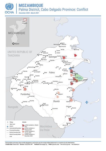 Jasmine Opperman, a senior researcher at ACLED (and with Zitamar News through the Cabo Ligado project), commented that an imminent attack on Palma was expected and warnings had been made to appropriate authorities. She has argued that it was a serious strategic mistake to leave Mocimboa da Praia occupied by the rebels since August, 2020 — allowing them to have a base for recruitment and regrouping.