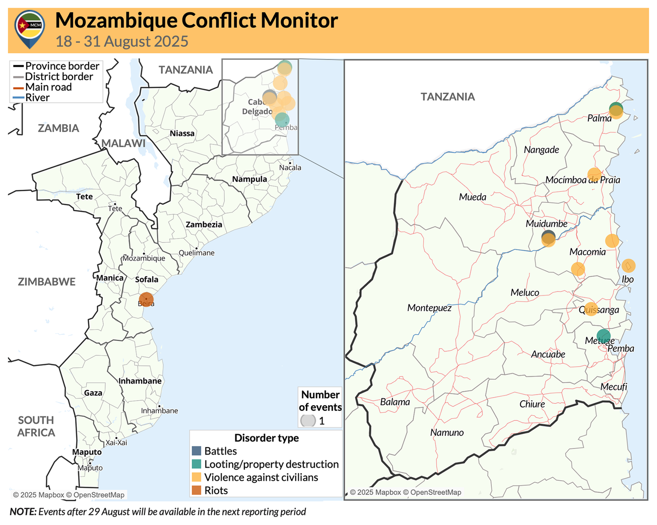 Data highlights in Cabo Delgado province (18 - 31 August 2025)