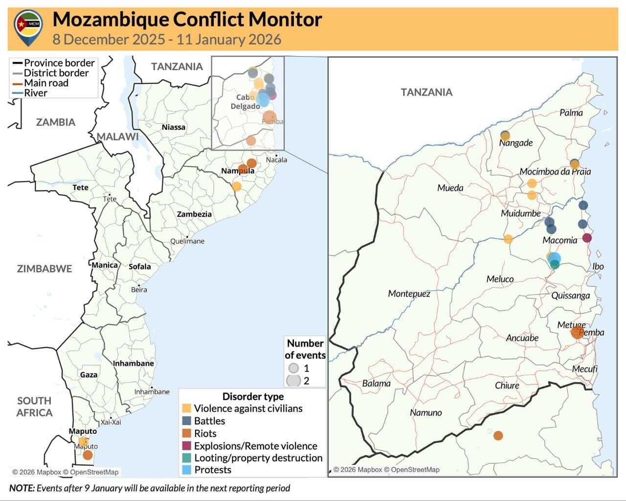 Data highlights in Cabo Delgado province (8 December 2025 - 11 January 2026 )